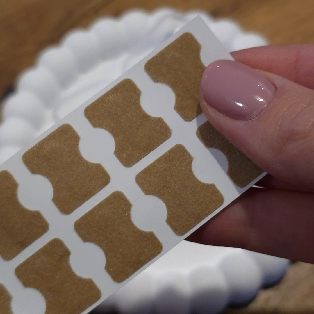 ➡️ Krok 3: Naklej plaster ochronny, dopasowując go do kształtu paznokcia.