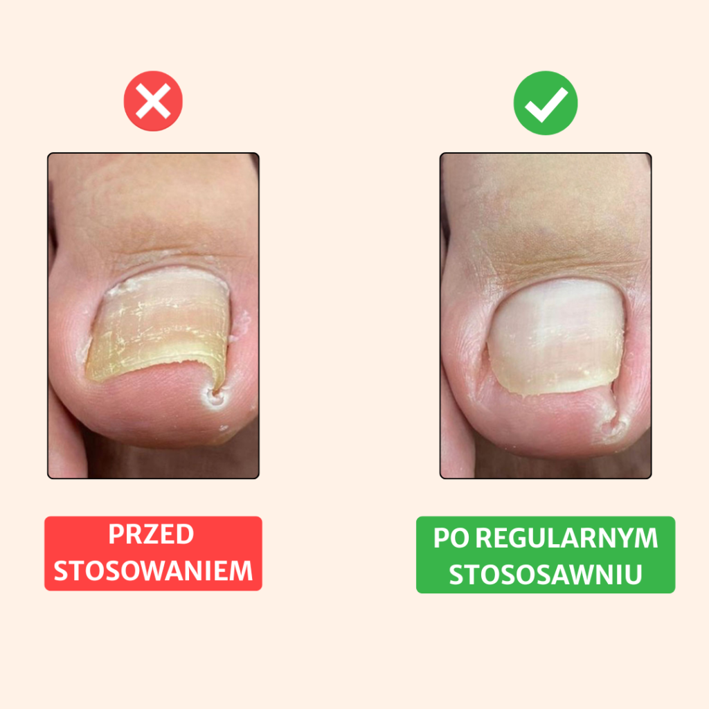 Pierwsza ulga może pojawić się stosunkowo szybko, natomiast widoczna poprawa wymaga regularnego stosowania zestawu. Tempo efektów zależy od indywidualnego przypadku i stopnia wrastania paznokcia.