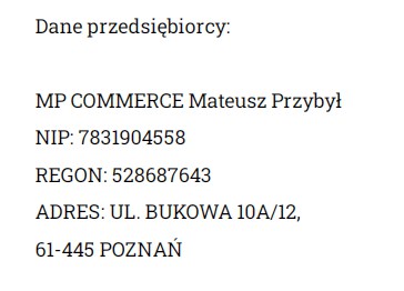 Sprzedawca – (przedsiębiorca) osoba fizyczna prowadząca jednoosobową działalność gospodarczą podlegająca wpisowi w Centralnej Ewidencji i Informacji o Działalności Gospodarczej (CEiDG).